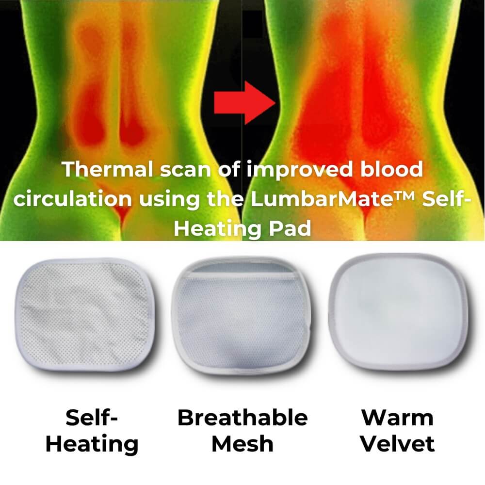 LumbarMate™has a steel plate for support. The plate is curved to follow the spinal curve. As you wear it, the plate pushes against your spine, keeping you straight. This posture reduces pain caused by pinched nerves. It also includes a self-heating pad to help reduce inflammation and improve blood circulation.